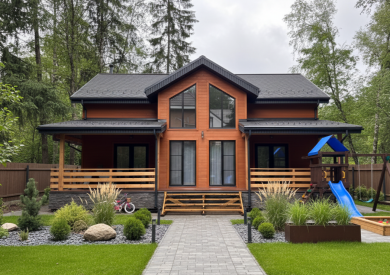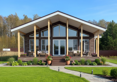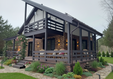 Эркер – это выступающая остекленная часть дома, выполненная в полукруглой, треугольной или многогранной форме. Этот архитектурный элемент придает всему строению изысканный и необычный облик, а также позволяет разнообразить планировку.