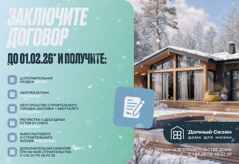 Планируйте строительство заранее и пользуйтесь уникальными бонусами: оформите договор до 1 февраля 2026 года и начинайте строительство в феврале с полной поддержкой от нашей компании.