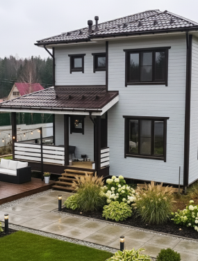Современный дом по канадской каркасной технологии, общей площадью 165 квадратных метров, с 4-мя просторными спальнями, 2-мя санузлами. Дом построен для семьи с детьми. Просторная гостиная скрасит каждый семейный вечер. В доме выполнена инженерная подготовка, оборудована котельная, выполнена разводка под водяное отопление. Дом сдан с финишной наружной и внутренней отделкой в современном стиле.