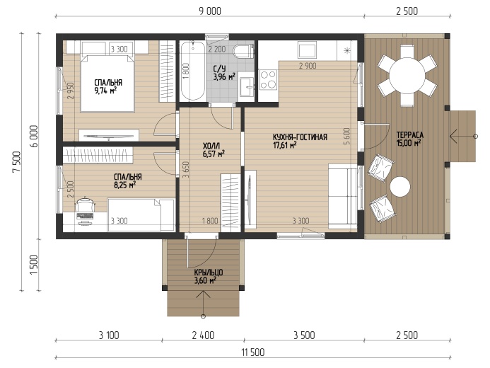 Несмотря на скромные размеры, планировка продумана до мелочей. В доме есть всё, что нужно для комфортной круглогодичной жизни: