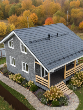 Дом, построенный нашей компанией в Калужской области, заслуживает особого внимания! За основу проекта был взят каркасный дом Шеферд. После доработок архитектора получился производный проект дома, который получил свое название как Монтана. В качестве наружной отделки Заказчиками была выбрана штукатурка Ceresit. Для каркасных домов как правило используется силикатно-силиконовая штукатурка, которая имеет свойства жевательной резинки, растягиваясь при малейших колебаниях. Текстура штукатурки выбрана – короед, оконные и дверные проемы отделаны декоративными элементами из пенопласта.