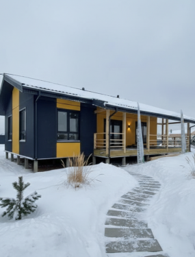 Современный дом на основе уникального проекта FIN-108 с тремя спальнями и просторной кухней-гостиной, площадью более 33,5 кв.м. Вам этого мало? Тогда в вашем распоряжении стильная терраса, ведь ее площадь - это еще целых 22,5 кв.м!