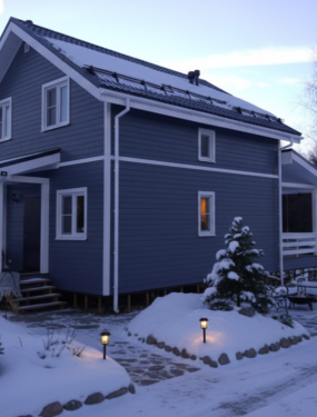 Двухэтажный загородный коттедж в классическом стиле построен в Одинцовском районе (п. «Старый городок») по технологии «каркас». На первом этаже традиционно спроектирована гостиная с кухней, спальня, которую можно приспособить под кабинет, техническое помещение. Есть гараж на один автомобиль. На втором этаже разместились 3 спальных, гардеробная комната и большая ванная на 10 м². Внешние стены дома обшиты фасадными ПВХ панелями под кирпич. Многоуровневая крыша покрыта металлочерепицей. Также на крыше были установлены снегозадержатели, выведена система вентиляции.