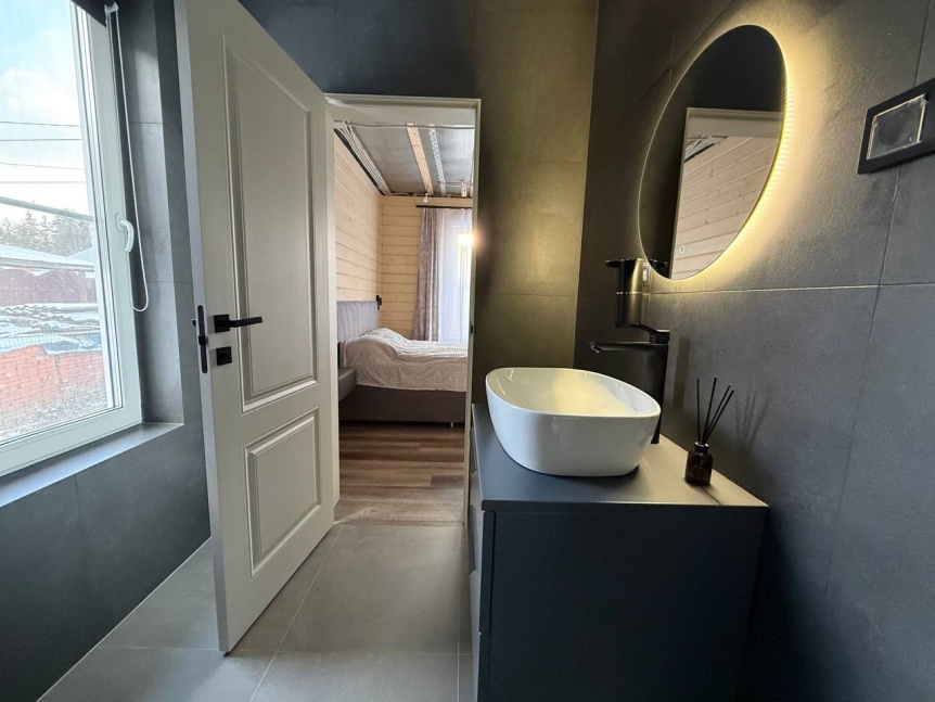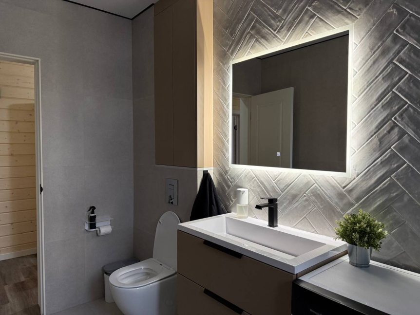 Планировка логичная и взрослая. Мастер-спальня вынесена в отдельную зону: собственный санузел и гардеробная — приватность, которую начинаешь ценить уже через неделю жизни в доме. Детский блок продуман не менее тщательно: две отдельные спальни, собственная гардеробная и общий санузел. Никаких «временных решений» — детям сразу удобно.