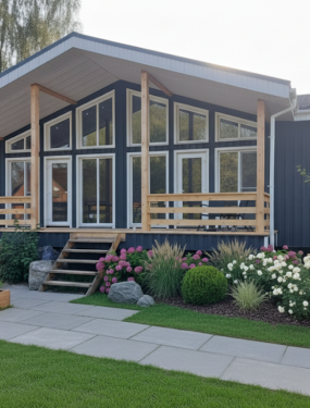 Двухэтажный дом с мансардным этажом построен по технологии «каркас» в поселке «Софрино» (Московская область). Установлен на свайно-винтовый фундамент. Общая площадь дома - 207 м². В доме 4 комнаты, просторная гостиная с кухней, 2 санузла, есть балкон. Для наружной отделки использовались эксклюзивные фасадные панели «Nichiha». Этот облицовочный материал абсолютно негорючий, к тому же и морозостойкий, что весьма важно в российских климатических условиях. Для материала кровли была использована металлочерепица, покрытая дополнительным защитным слоем.