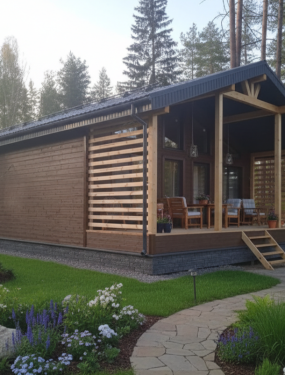 Двухэтажный каркасный дом, построенный в СНТ "Конструктор-1". Проект дома разработан идивидуально под заказчика на базе типового проекта "Империя". Дом построен к комплектации "под ключ" с общей площадью 115,2 м и линейными размерами 8,2х8м. Дом стоит на свайно-винтовом фундаменте, отделка дома - фиброцементный сайдинг CEDRAL, дом оборудован инженерным пакетом: электроснабжение, вентиляция, водоснабжение и водоотведение (канализация). В доме установлена сосновая межэтажная лестница с резными балясинами и косоурами "под ключ".