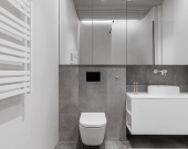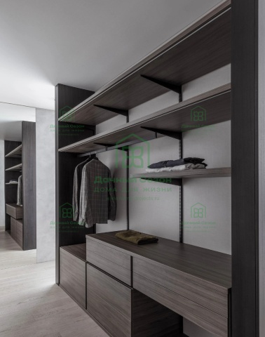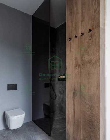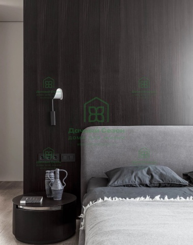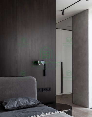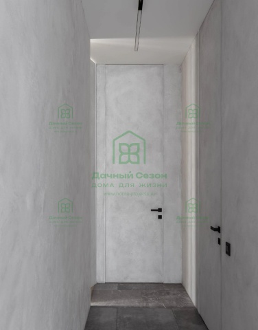 В доме предусмотрена мастер-спальня с собственным санузлом и гардеробной, ещё две спальни с общим санузлом, техническое помещение и кладовая для хранения.