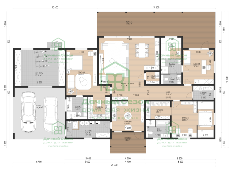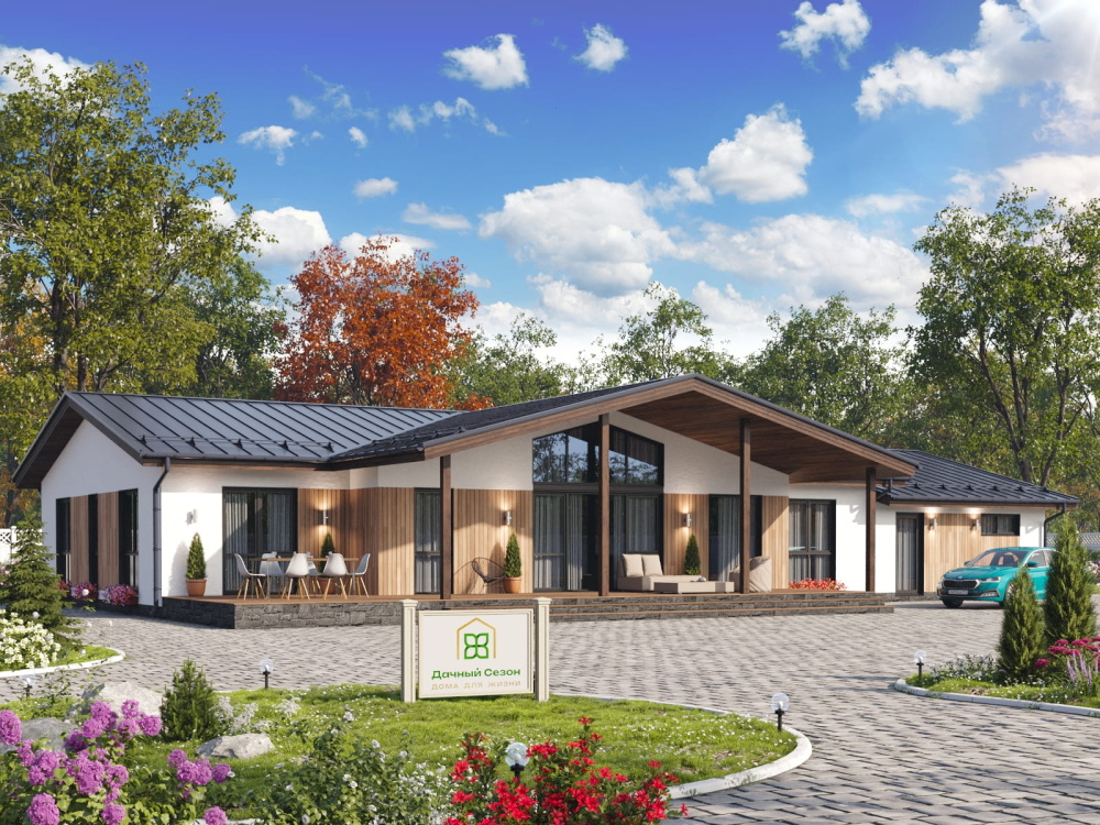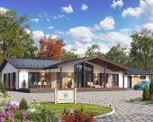 Резюме: «Брикин» — это дом-резиденция для тех, кто не готов к компромиссам. Здесь есть всё: от продуманных систем хранения и прачечной до собственной сауны и огромной гостиной для приема гостей. Одноэтажный формат делает перемещение по дому максимально безопасным и удобным для людей любого возраста.