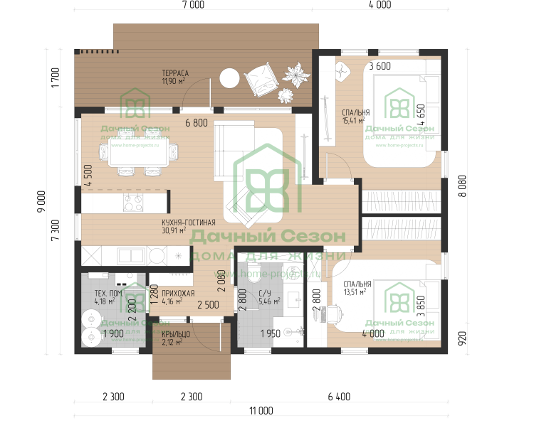 - Размеры 9x11 м