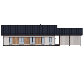 Проект «Уик» — это современный одноэтажный дом площадью 125 кв. м, выполненный в лаконичном скандинавском стиле. Архитектура дома сочетает в себе строгую геометрию, панорамное остекление и функциональность, подчеркнутую натуральными оттенками фасада.