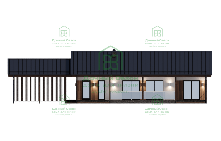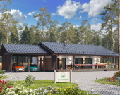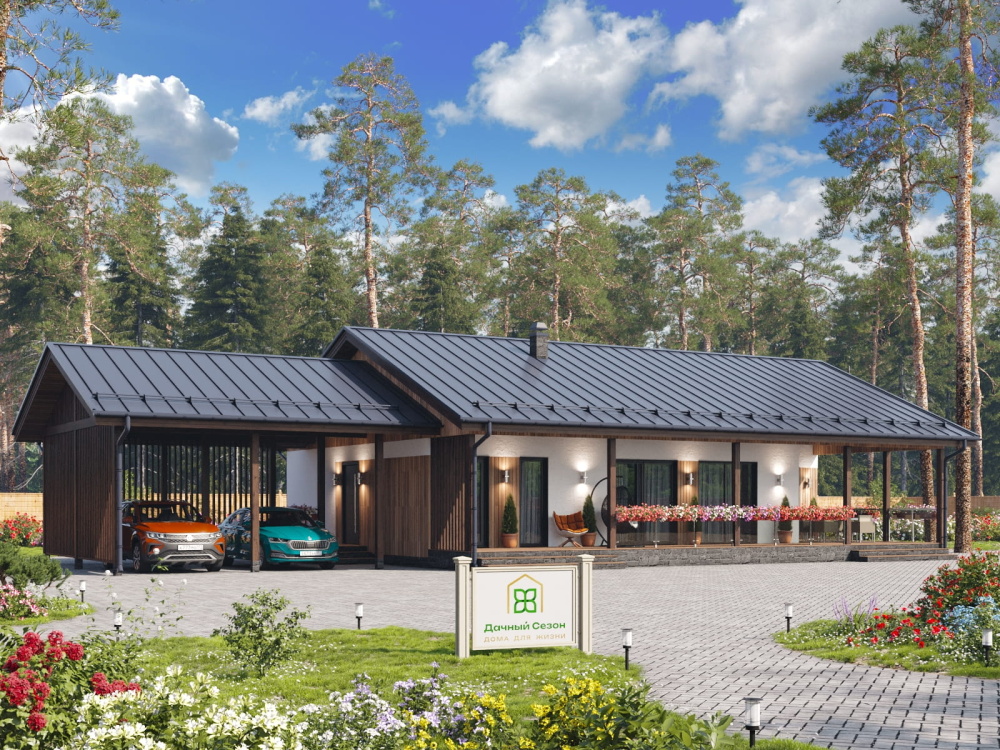 Проект «Уик» — это выбор тех, кто ценит эстетику минимализма и комфорт одноэтажного проживания. Продуманная эргономика, наличие трех спален, огромная терраса и защищенная парковка делают этот дом отличной альтернативой городской квартире для постоянного проживания за городом.