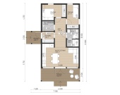 60 м2Проект дома представлен с учетом доп. опций, не включенных в стоимость, указанную на сайте. Площадь указана по внешнему контуру дома, без учета террас, балконов и крыльца. Внесение изменений в проект дома может повлиять на стоимость. Площадь внутренних помещений при проектировании может отличаться от указанной на сайте в зависимости от используемых материалов и толщины стен.