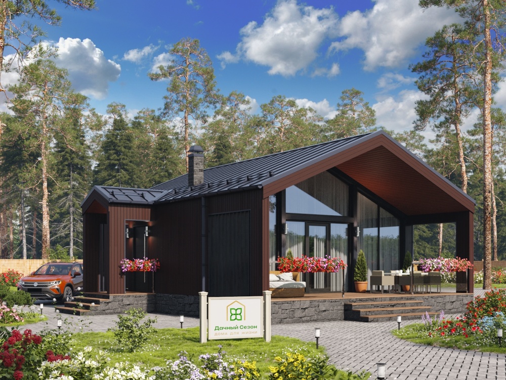 Этот дом, площадью 64 м² – стильное решение для дачи, загородного отдыха или комфортного постоянного проживания. Максимум света, простора и функциональности в компактном формате.