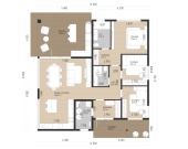 Планировка построена вокруг большой кухни-гостиной 36,5 м² — сердца дома. Здесь легко представить семейные ужины, шумные выходные и длинные разговоры за столом. Из гостиной есть выход на просторную террасу 23,2 м², которая летом работает как ещё одна комната: завтраки на воздухе, шезлонги, гриль и ощущение загородного отдыха без выезда за город.