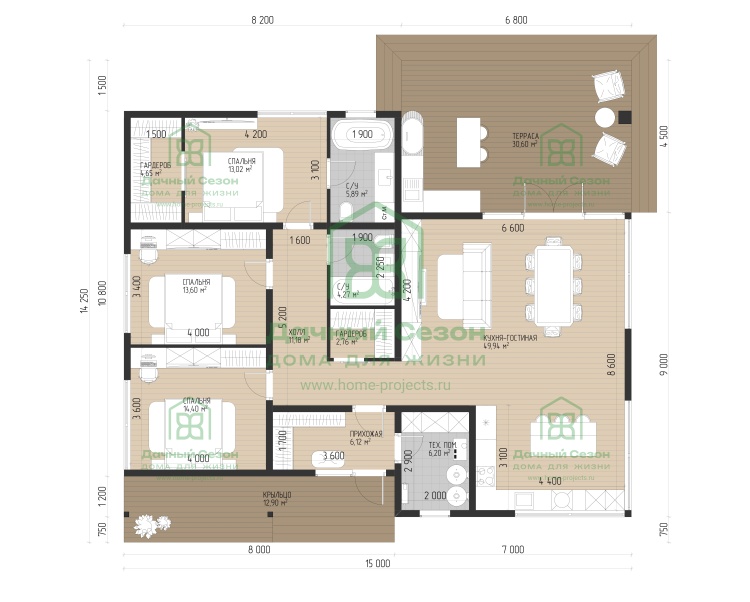149 м2Проект дома представлен с учетом доп. опций, не включенных в стоимость, указанную на сайте. Площадь указана по внешнему контуру дома, без учета террас, балконов и крыльца. Внесение изменений в проект дома может повлиять на стоимость. Площадь внутренних помещений при проектировании может отличаться от указанной на сайте в зависимости от используемых материалов и толщины стен.