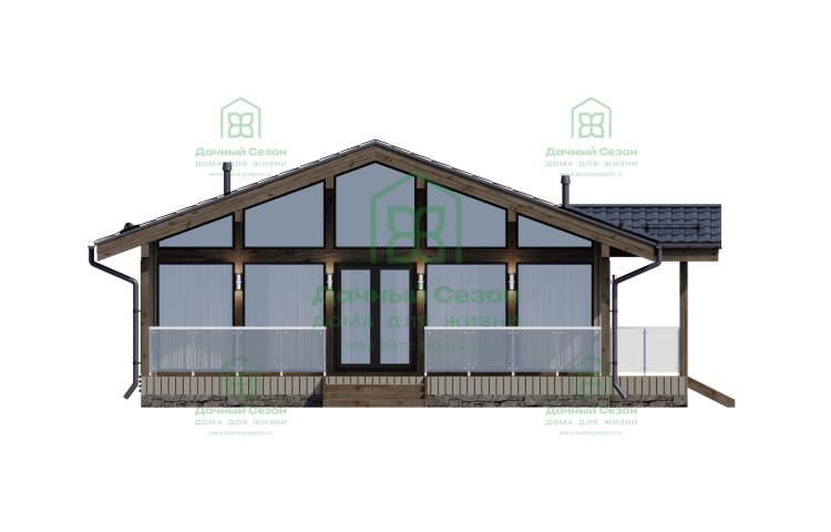 90 м2Проект дома представлен с учетом доп. опций, не включенных в стоимость, указанную на сайте. Площадь указана по внешнему контуру дома, без учета террас, балконов и крыльца. Внесение изменений в проект дома может повлиять на стоимость. Площадь внутренних помещений при проектировании может отличаться от указанной на сайте в зависимости от используемых материалов и толщины стен.