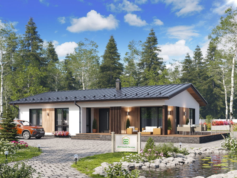 Проект «Глазго» — это современный одноэтажный дом площадью 125 кв. м, который воплощает в себе эстетику европейского минимализма и продуманный до мелочей функционал. Лаконичные формы, сочетание белоснежных фасадов с теплой фактурой дерева и панорамное остекление делают этот дом идеальным выбором для тех, кто ценит свет, простор и единение с природой.