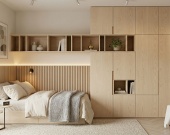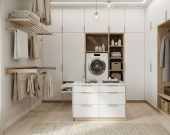 В зоне входа расположена удобная прихожая (5,34 кв. м), где предусмотрено место под вместительный шкаф-купе.