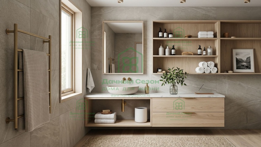 Два санузла: Основной (5,25 кв. м) в центре дома и дополнительный в спальной зоне (2,29 кв. м).
