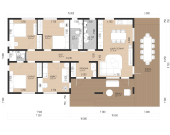 «Глазго» — это идеальный дом для семьи из 4–5 человек. Благодаря отсутствию лестниц он безопасен для маленьких детей и удобен для пожилых людей. Четыре отдельные жилые комнаты дают возможность каждому члену семьи иметь свое личное пространство, а огромные террасы расширяют границы дома, превращая придомовой участок в продолжение жилой зоны.
