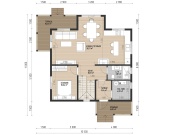 Удобство и практичность – вот что отличает планировку этого дома. Главный вход с крыльца ведет в тамбур. Благодаря этой комнате холодный воздух зимой не сможет попасть внутрь дома. На первом этаже большая кухня-столовая-гостиная, площадь этой комнаты – 36 квадратных метров. Второй этаж предназначен для отдыха. Здесь 4 спальни, 2 санузла.