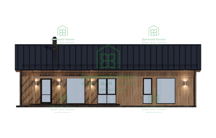 Этот проект сочетает в себе эстетику и практичность, подходя как для сезонной дачи премиум-класса, так и для постоянного проживания небольшой семьи. Строгий скандинавский стиль фасада гармонично дополняет любой участок в Московской или Ленинградской области.
