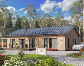 Проект «Лестер» представляет собой одноэтажный коттедж в скандинавском стиле, объединяющий компактность и высокий уровень комфорта. При габаритах фундамента 9,5х15 м (с учетом выступов террасы ширина составляет 12 м) дом обладает общей площадью 140 м², что делает его оптимальным решением для семьи из 4–5 человек.
