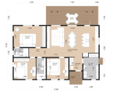 140 м2Проект дома представлен с учетом доп. опций, не включенных в стоимость, указанную на сайте. Площадь указана по внешнему контуру дома, без учета террас, балконов и крыльца. Внесение изменений в проект дома может повлиять на стоимость. Площадь внутренних помещений при проектировании может отличаться от указанной на сайте в зависимости от используемых материалов и толщины стен.