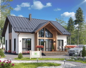 Проект «Нэрн» (160 кв. м) — это современный двухэтажный дом мансардного типа с линейными размерами 8х10 м. Он идеально подходит для тех, кто ищет баланс между компактным пятном застройки и ощущением безграничного пространства внутри. Архитектура дома построена на сочетании строгой графитовой кровли, белоснежных фасадов и теплых текстур дерева, что делает его органичным дополнением любого природного ландшафта.