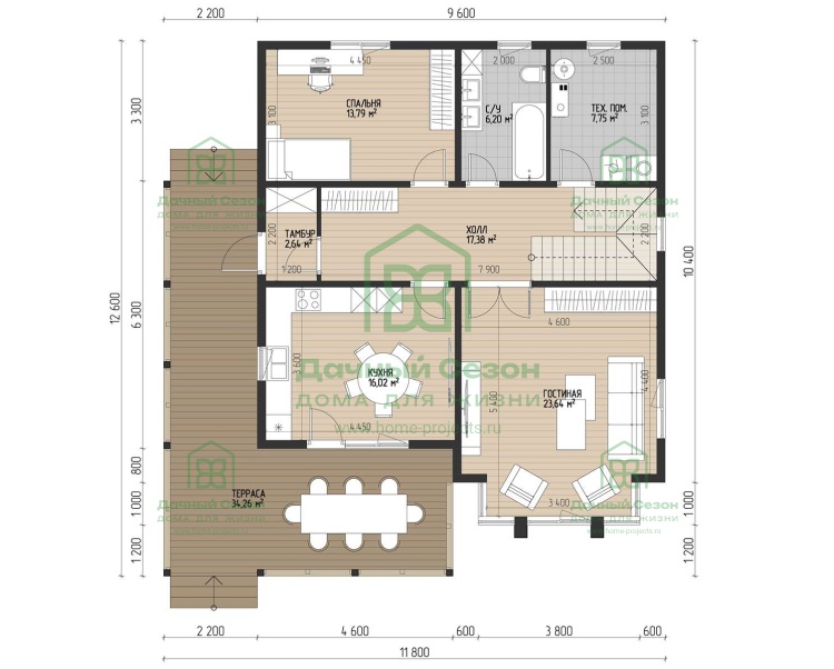 - Размеры 9.6x11.4 м