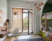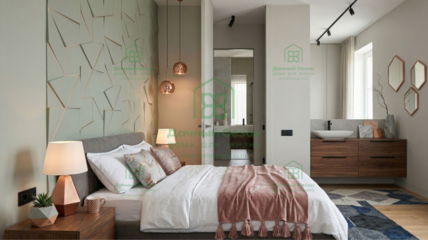 Мастер-спальня (13,2 кв. м) имеет собственный выход на террасу и индивидуальный санузел (4,95 кв. м), обеспечивая родителям полную приватность.