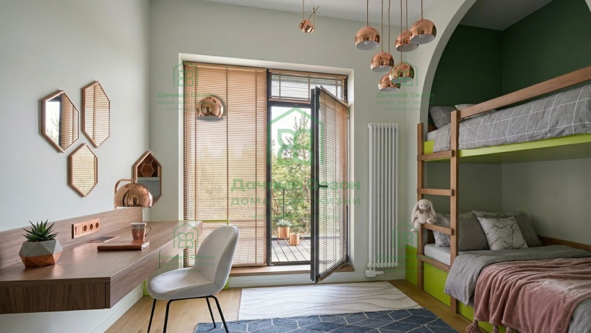 Внутреннее пространство четко разделено на общую и приватную зоны, что обеспечивает комфортный сценарий жизни для семьи из 3–5 человек.