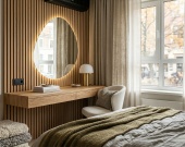Мастер-спальня (20,52 кв.м.) — настоящий «дом в доме». К ней примыкают собственная просторная ванная комната (10,44 кв.м.) и вместительная гардеробная (9,28 кв.м.).